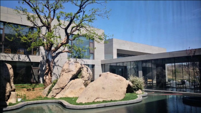 温泉艺术中心的设计理念强调与自然融合,透过覆盖整个立面的落地玻璃窗,身在泡池中便可近观山林,远眺长城,将山间四时风景尽收眼底。其中较受欢迎的是国内新引进的电气浴,它将与人体“生物电”基本吻合的微电流释入温泉水中,具有特殊的理疗效果。